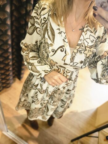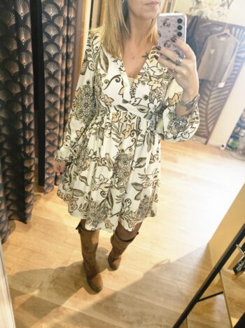 Cette robe blanche à fleurs marron allie légèreté et élégance. Son tissu fluide et sa coupe féminine mettent en valeur la silhouette, tandis que l’imprimé floral apporte une touche naturelle et raffinée. Parfaite pour un look chic et printanier, du quotidien aux occasions spéciales.