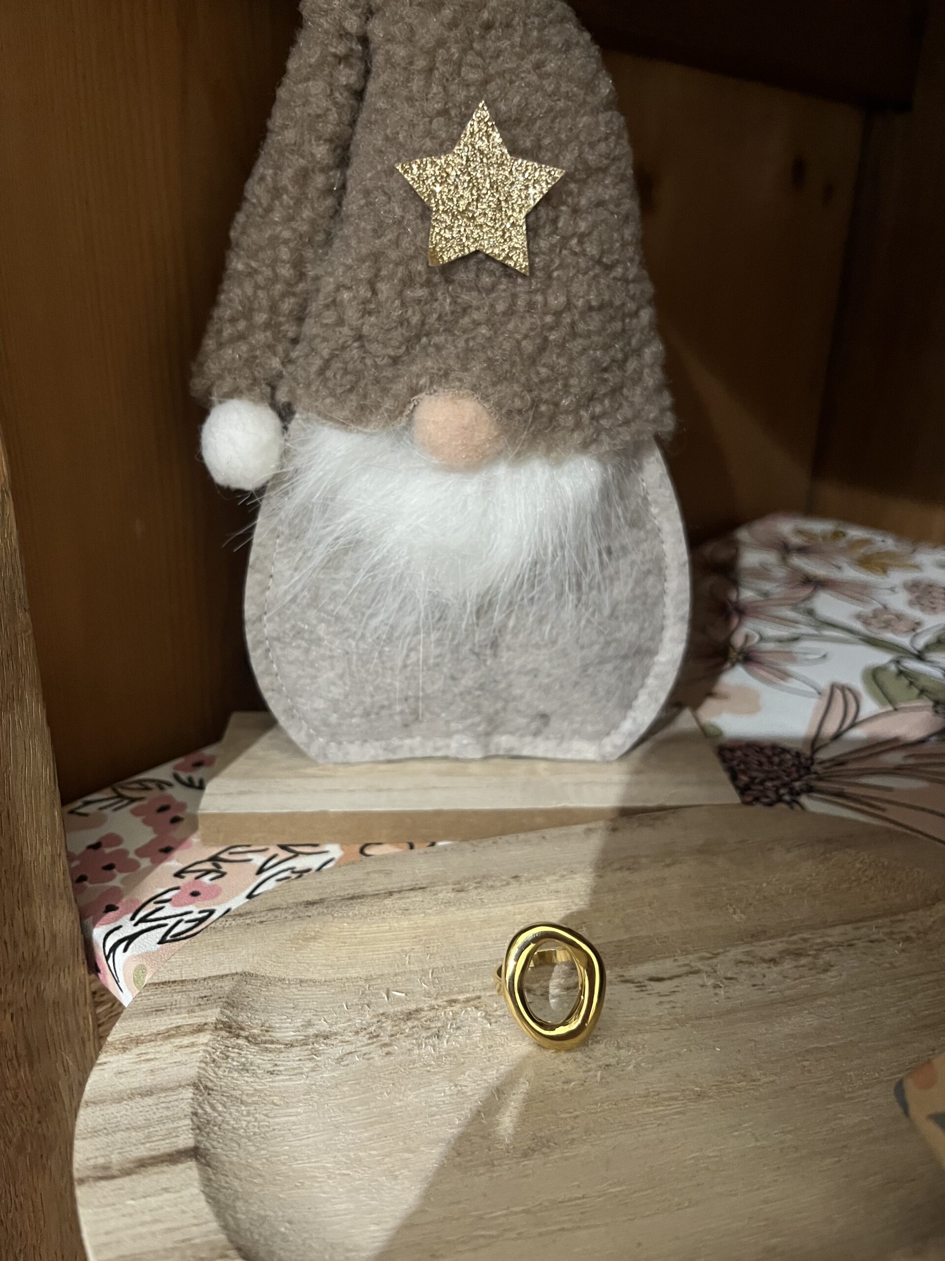 Bague ajustable en acier inoxydable doré.