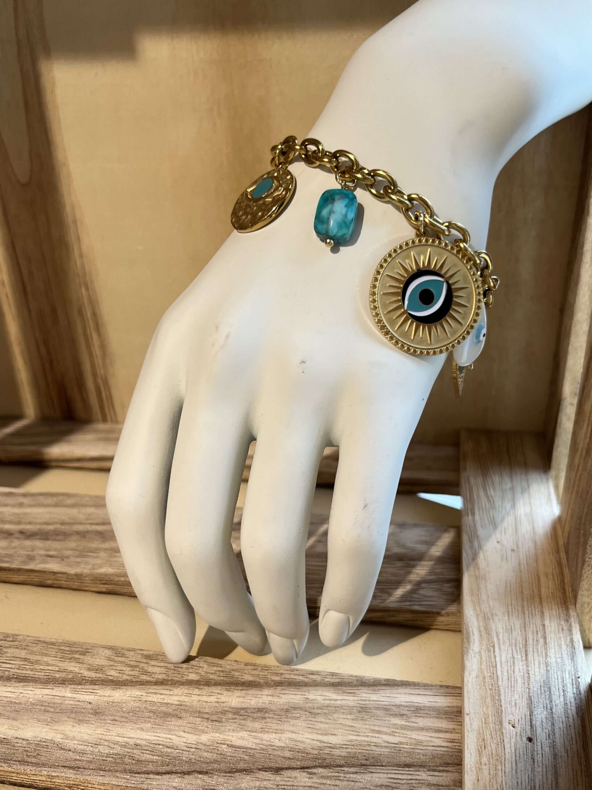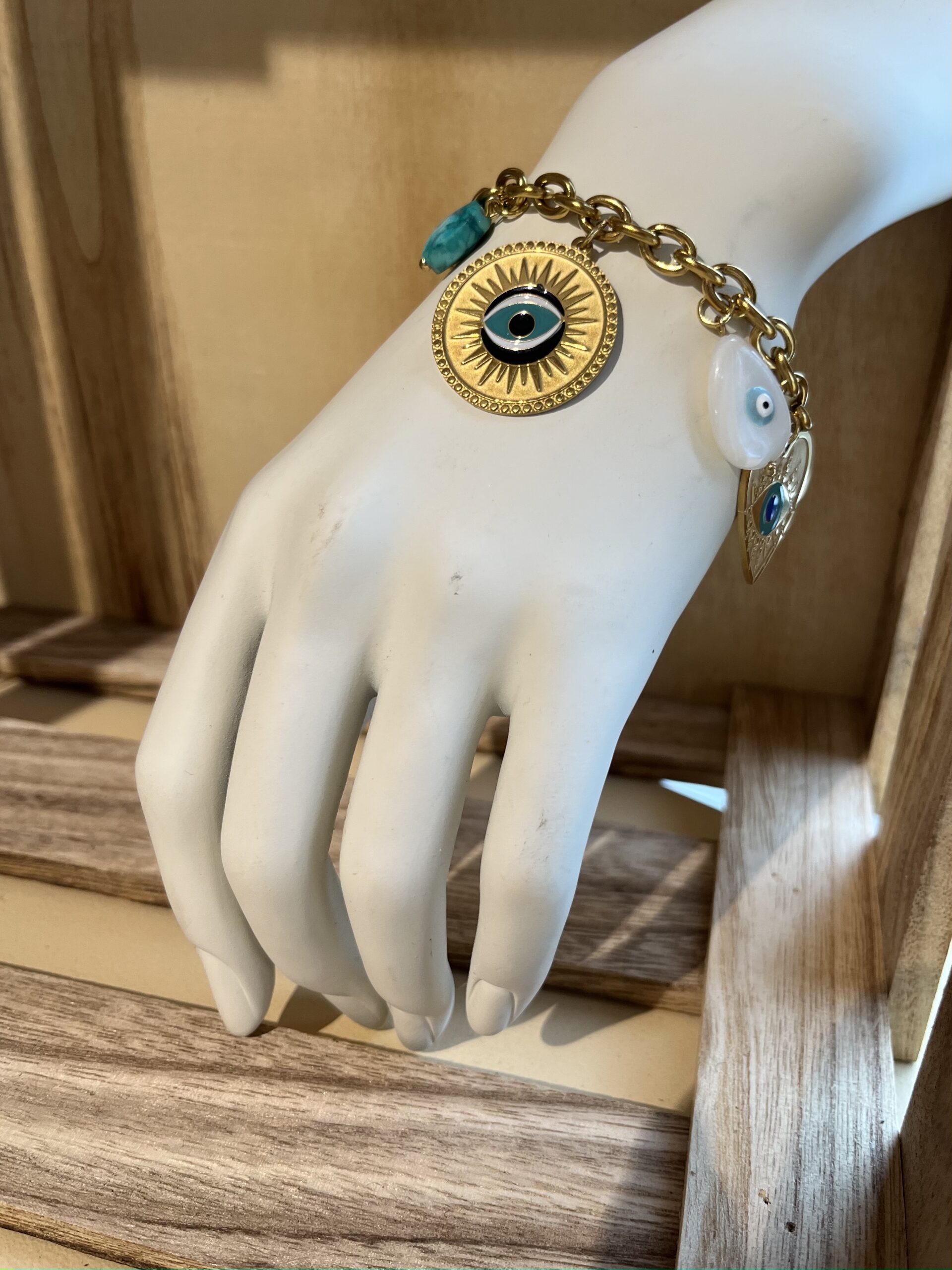 Bracelet à breloques doré en acier inoxydable – Œil de protection