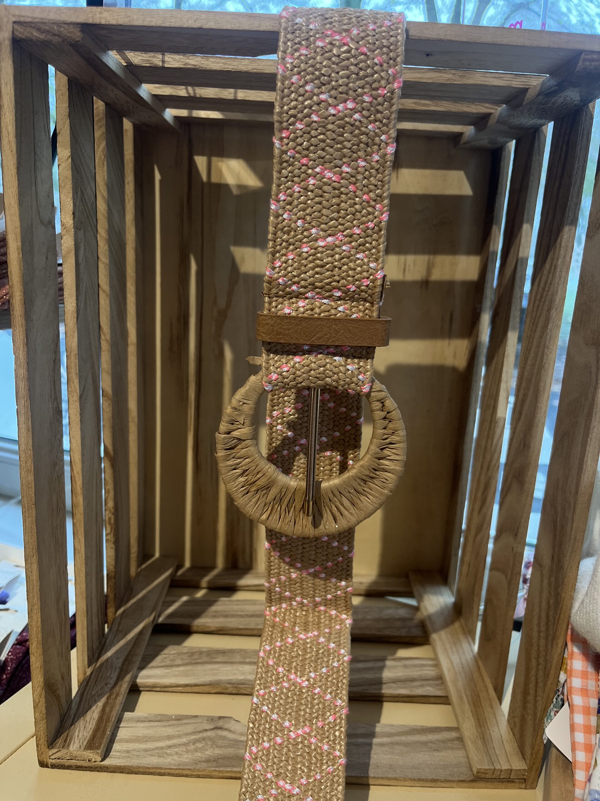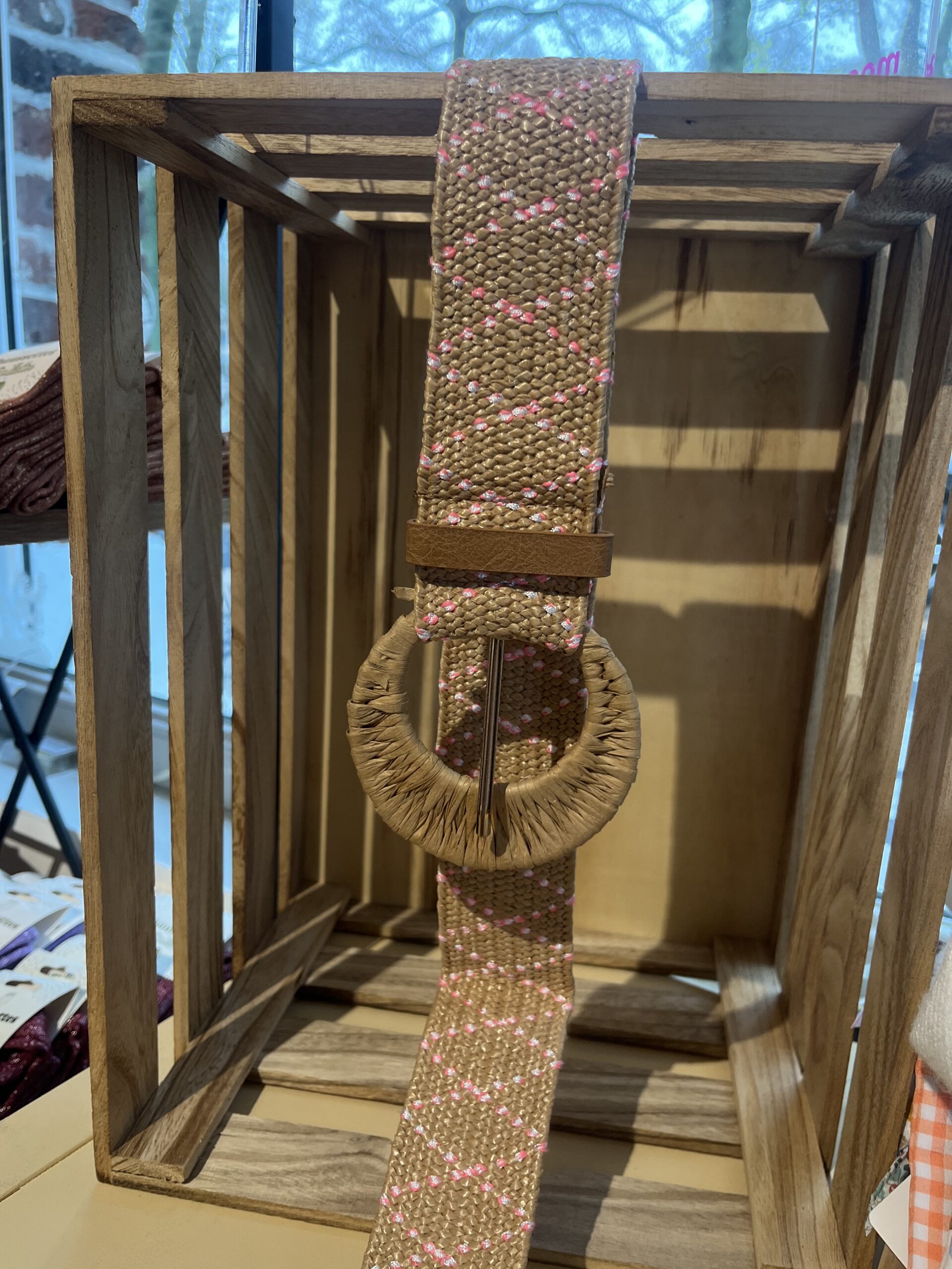 Tressage beige et rose doux avec boucle ronde enveloppée effet naturel. Pour un style bohème chic toute la journée