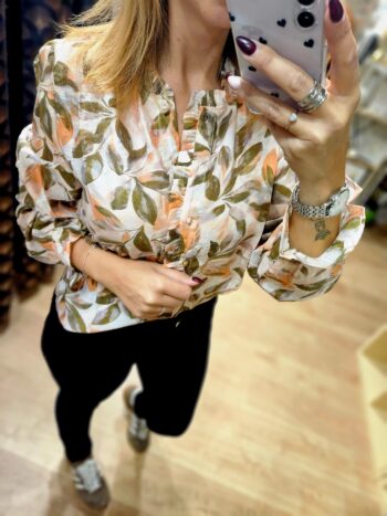Fraîche et lumineuse, cette chemise blanche à fleurs vertes et orangées séduit par son col classique et sa coupe fluide. L’imprimé floral apporte une touche de couleur et d’élégance naturelle, idéale pour un look printanier chic et décontracté.