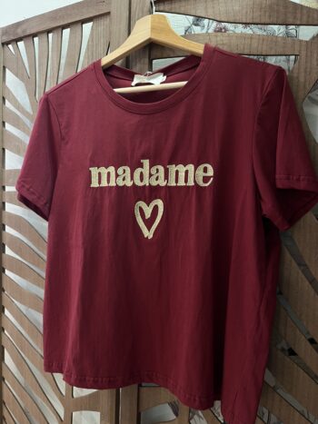« Madame » écrit en lettres bronzes scintillantes, suivi d’un petit cœur tout doux : le combo parfait entre affirmation et tendresse.