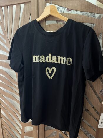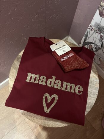 « Madame » écrit en lettres dorées scintillantes, suivi d’un petit cœur tout doux : le combo parfait entre affirmation et tendresse.