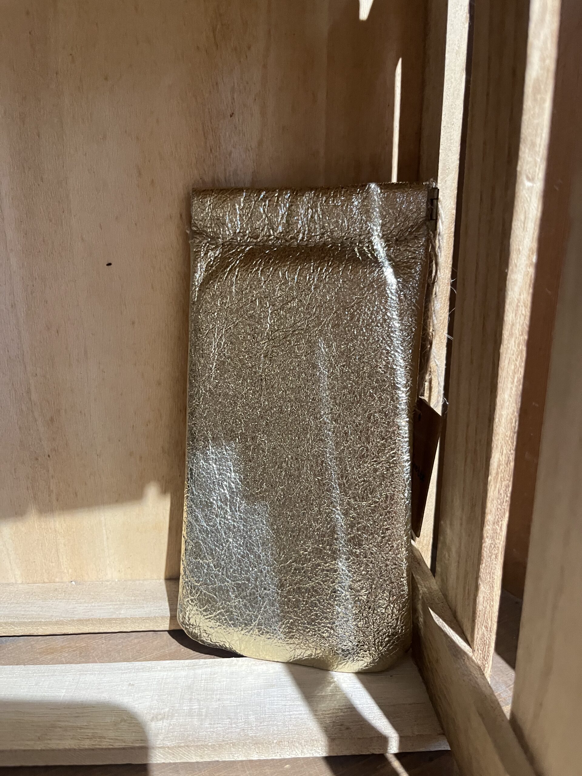Protégez vos lunettes avec style grâce à cet étui en cuir doré✨