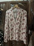 Magnifique blouse en voile léger et légèrement transparent, avec un sublime imprimé floral oversize ton sur ton noir et caramel/toffee, ultra élégant et facile à porter.
