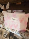 Jolie pochette zippée « Amour » en toile imprimée fleurs aquarelle bleues et roses. Ultra-douce, légère et tellement romantique.